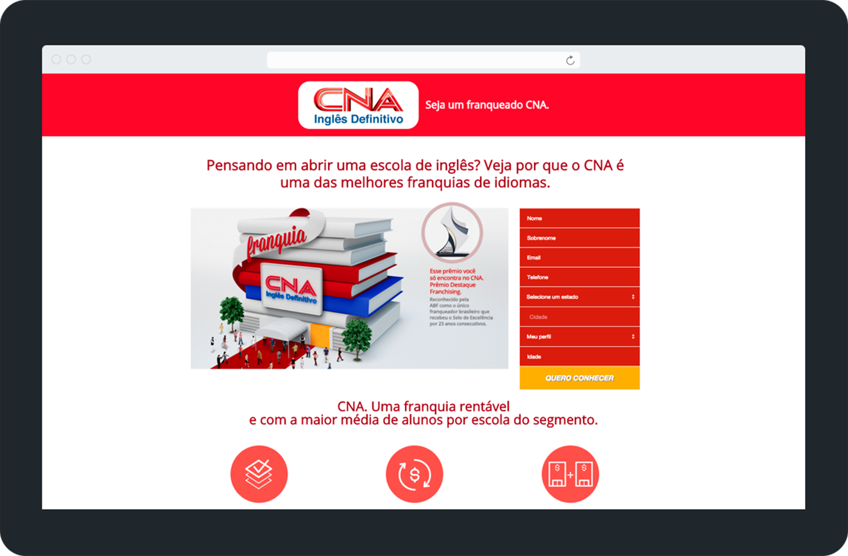 Uma das maiores e mais tradicionais redes de ensino de idiomas no Brasil, o CNA possui mais de 600 escolas e mais de 400 mil alunos em todo o país, nos mais de 46 anos de sua existência. Além do amplo reconhecimento como escola de inglês, a atuação B2B do CNA como franqueadora também é digna de destaque. É uma das redes mais premiadas do franchising brasileiro, ostentando o prêmio de “Franqueador do Ano” por 29 vezes consecutivas.