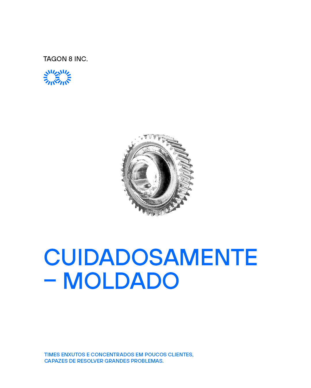 Atualizar a identidade da Tagon8 foi desafiador: encontrar elementos que representassem os atributos mais atuais da empresa, sem perder traços que estão presentes desde sua fundação. O resultado foi uma marca moderna, clean e elegante. O número 8 sai do logo e passa a ser representado pelas engrenagens, um símbolo de potência, força e desempenho.